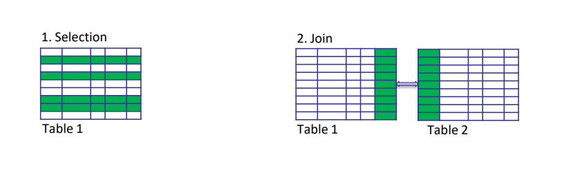 공유 테이블 양쪽의 열에 대해 링크를 생성하여 다른 테이블에 저장되어 있는 데이터를 함께 가져오기 위해 SQL의 join 기능을 사용할 수 있습니다.